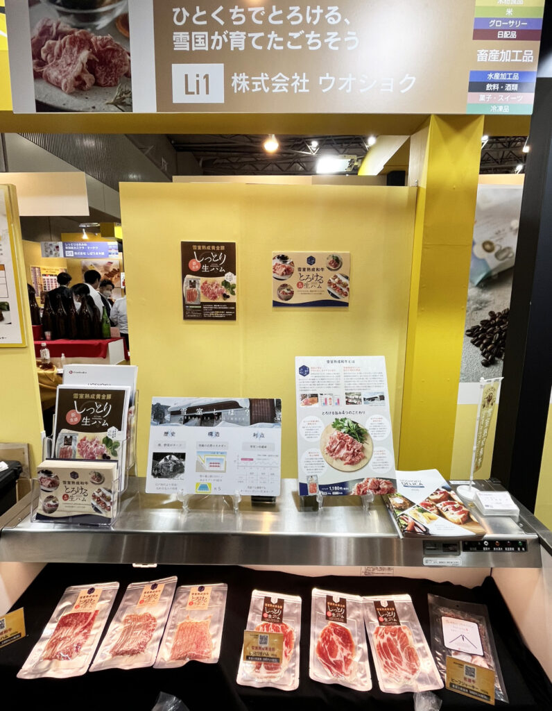 今回のブースでは、雪室熟成技術を活かしたウオショクブランド商品を中心に、小売で活躍する商品を幅広く展示しました。
